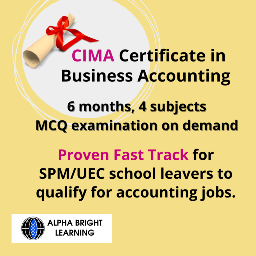 Alpha Bright Learning is a CIMA Registered Tuition Provider. You will be coached personally by professional accountant teachers who have more than 20 years of excellent teaching experience, as well as corporate experience.